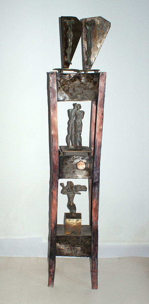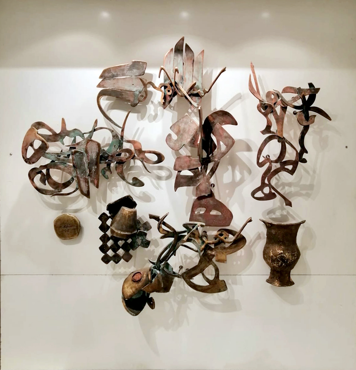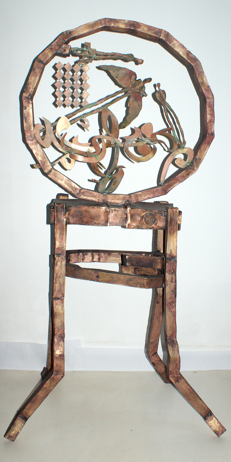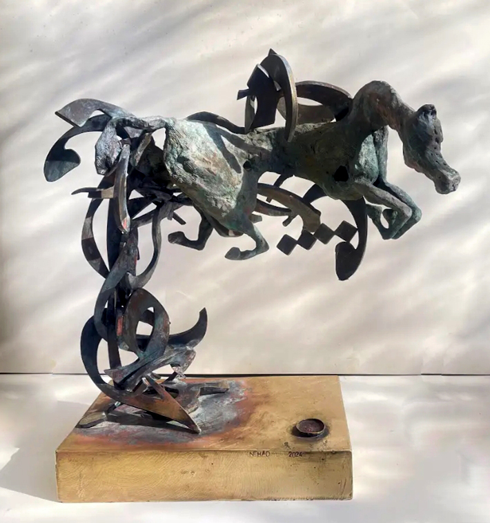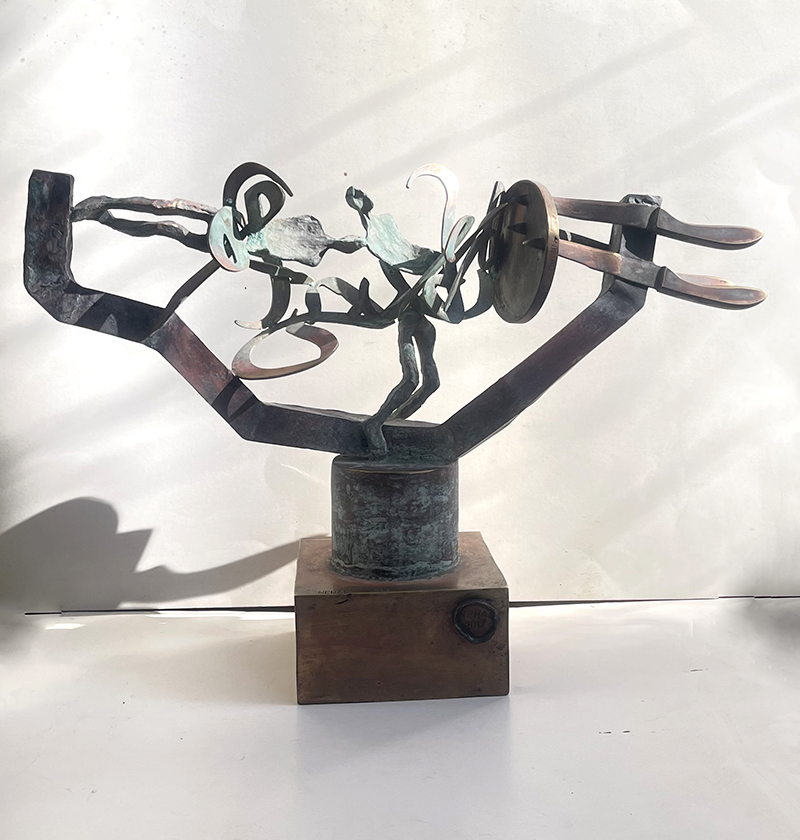 Sculptural Sounds The presence of the Arabic letter as a common denominator in all the sculptures appears as though it were an element parallel to the figures (the present – the absent). At times, it is presented as a fundamental component of the artwork, and at other times it functions as a symbol of something beyond itself. Here, the visual scene operates through the alphabet of the letter and its symbolic connotations. The harmony between the letter (sound – form) and these symbols, which parallel its pronunciation, acts as a complement in enriching the subject and leading it into the realm of symbols (semiology). Nehad Al Azzawi
